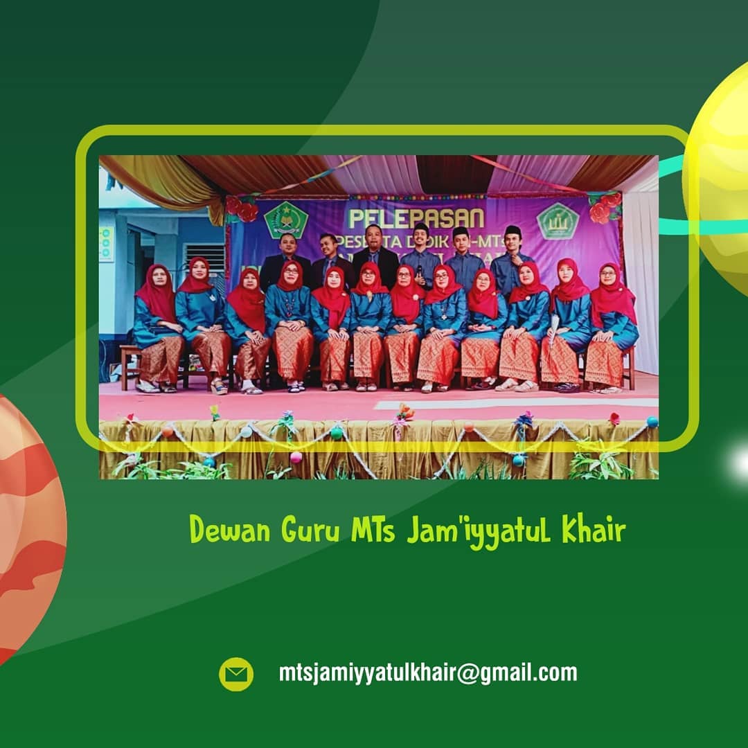 MTs Jam’iyyatul Khair memiliki tenaga pendidik dan kependidikan yang sebagian besar ditunjang dengan tingkat pendidikan yang sesuai dengan tugas yang diampu. Tenaga pendidik dan kependidikan berjumlah 20 orang yang terdiri dari 1 orang Kepala Madrasah, 13 guru mata pelajaran yang memiliki kualifikasi S1, dan 3 orang tenaga administrasi (operator madrasah), 2 orang Halper 1 orang security .Adapun karakteristik Tenaga pendidik dan tenaga kependikan secara rinci di lihat pada tabel berikut :